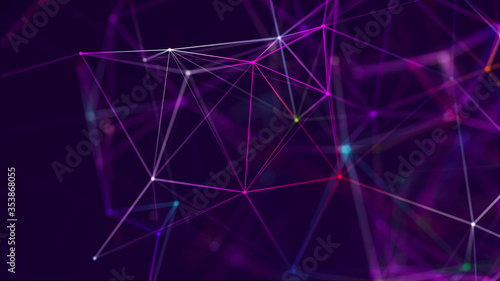 Abstract digital communication points. Technological background. Network connection structure. Color plexus effect. 3D