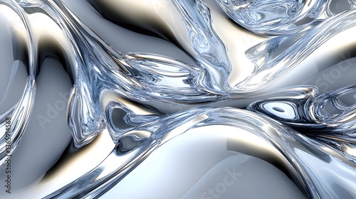 Abstract digital composition with flowing reflective silver and white surfaces