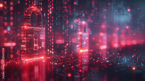 Abstract digital concept of cybersecurity with a stylized padlock integrated into a background of glowing binary code and circuit lines, symbolizing data protection, encryption
