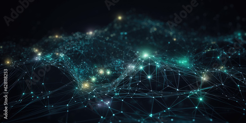 Abstract digital connection dots. Technology background. Network connection structure. Plexus effect. Generative AI