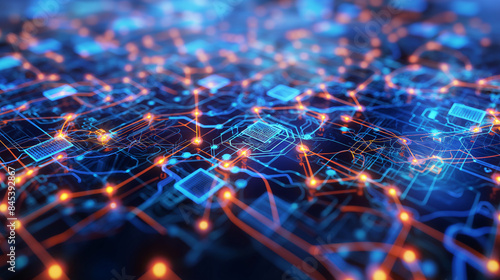 Abstract Digital Connections Featuring Data and Blockchain Technology in a High-Resolution Minimalist Design