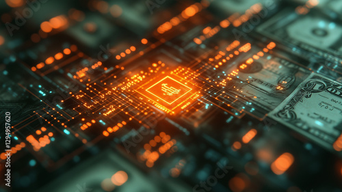 Abstract Digital Currency with Coins and Glowing Elements