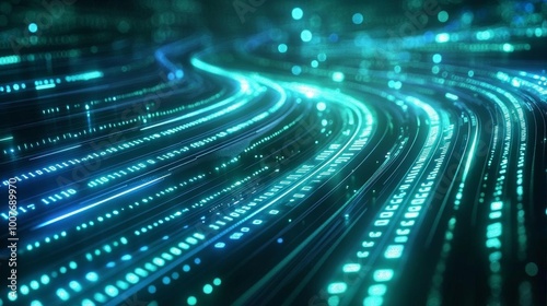 Abstract Digital Data Flow with Binary Code and Glowing Lines