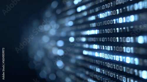 Abstract digital data flow with binary code, representing the world of technology and information processing.