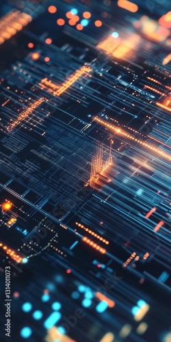 Abstract Digital Data Flow with Neon Lights and Futuristic Patterns in a Technology Background