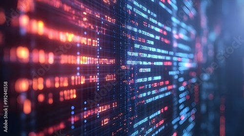 Abstract Digital Data Flow with Red and Blue Lighting