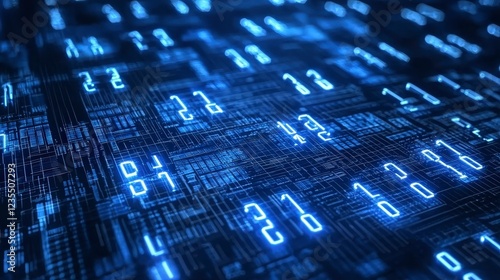 Abstract Digital Data Matrix with Glowing Blue Binary Numbers