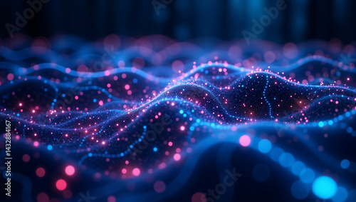Abstract Digital Data Network Wave Visualization with Glowing Blue and Pink Particles | Technology Background Loop