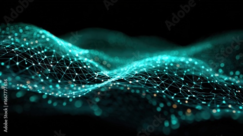 Abstract Digital Data Network Waves with Light Particles Bright Blue Glowing Overlay Visualization