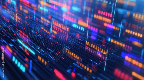 Abstract Digital Data Stream: A Vivid Visualization of Binary Code Flowing Through a Network