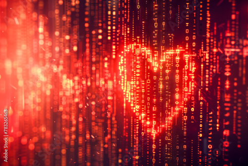 Abstract Digital Data Stream Background with Red Glowing Binary Code