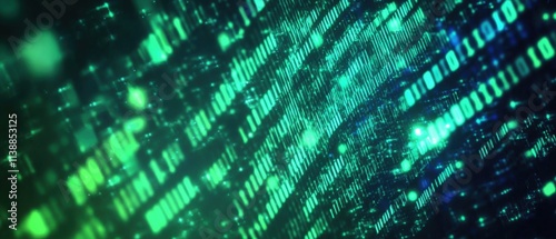 Abstract Digital Data Stream: Glowing Green Binary Code Background