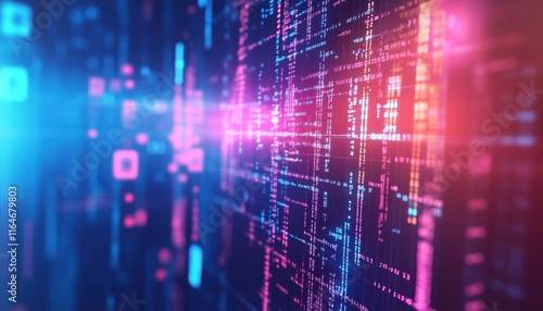 Abstract Digital Data Stream Neon Pink Blue Code Futuristic Technology Background