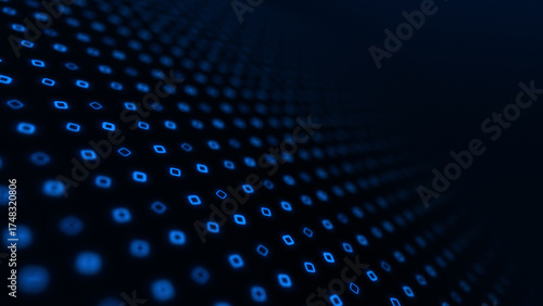 Abstract digital data stream on a dark background with flowing matrix-like lines. Futuristic technology design representing coding, information flow, and IT concepts. Perfect for digital art, technolo