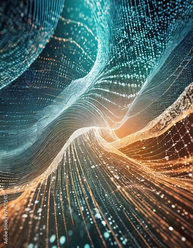 Abstract digital data stream technology background with depth of field for a dynamic and tech-savvy vibe