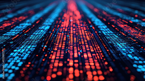 Abstract digital data stream visualization with colorful binary code representation, focusing on futuristic technology and information processing.