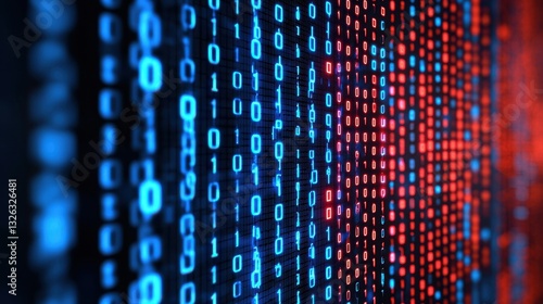 Abstract Digital Data Stream with Binary Code in Blue and Red