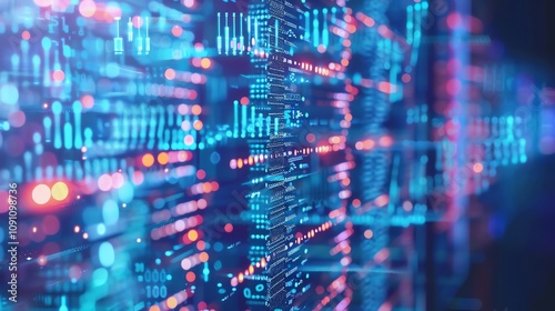 Abstract digital data stream with glowing lines and bokeh effects.