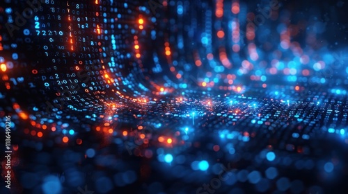 Abstract Digital Data Stream with Glowing Numbers