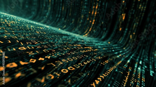 Abstract Digital Data Stream with Text and Numbers