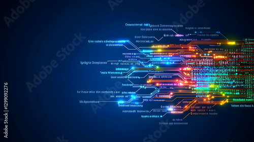 Abstract Digital Data Stream With Vibrant Lines Over Blue Background Representing Modern Technology