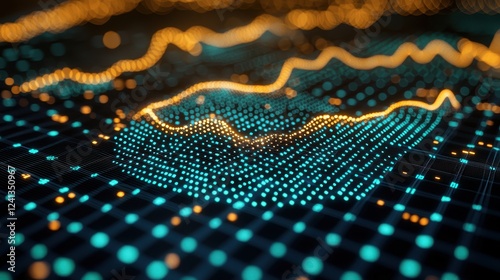 Abstract Digital Data Visualization Blue and Orange Glowing Network Technology Background