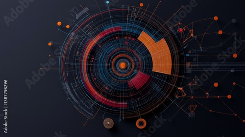 Abstract Digital Data Visualization with Circular Elements and Lines