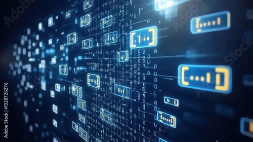 Abstract Digital Data Visualization with Glowing Technology Elements