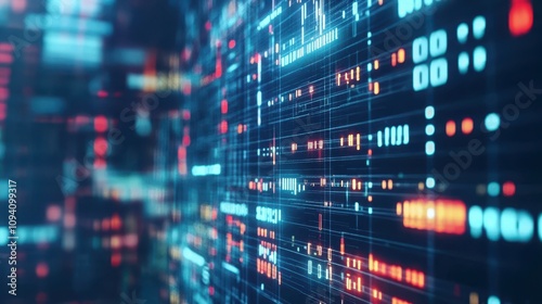 Abstract digital data visualization with lines and glowing elements.