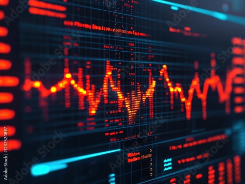 Abstract Digital Data Visualization with Red Lines and Patterns
