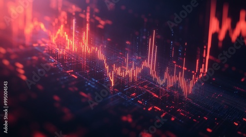 Abstract digital data visualizations with glowing red and blue lines against a dark background, representing data analysis.
