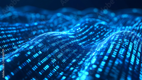 Abstract Digital Data Wave Binary Code Flowing in Blue