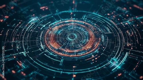 Abstract digital design featuring glowing circular patterns and interconnected lines, evoking a futuristic technology theme.