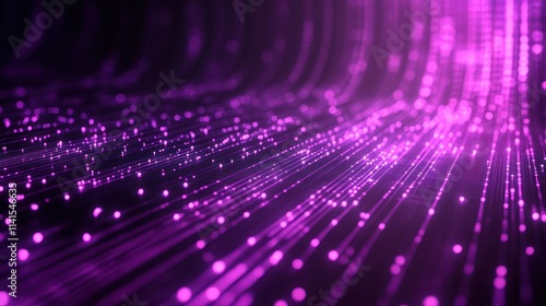 Abstract digital design with glowing purple lines and particles creating a dynamic flow.