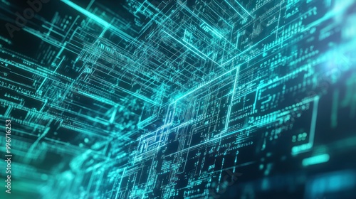 Abstract digital design with interconnected lines and glowing elements, representing technology.