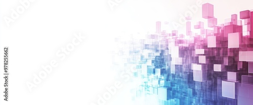 Abstract digital design with overlapping geometric shapes in gradient colors.