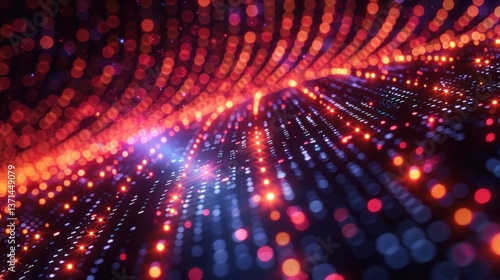 Abstract digital glowing particles tunnel, vibrant colors, depth