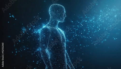 Abstract Digital Human Form Disintegrating Into Light Particles