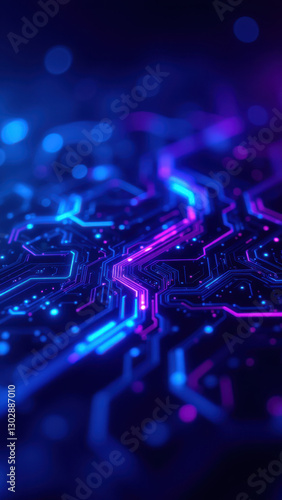 Abstract digital interface with blue lights and intricate lines.