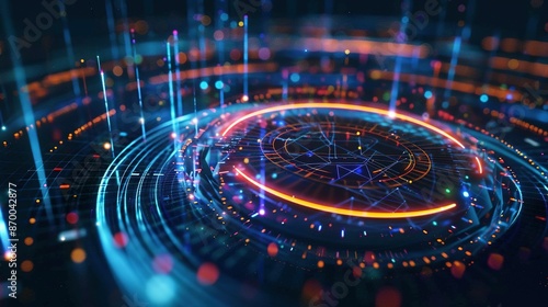 Abstract Digital Interface with Glowing Lines and Circles