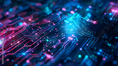 Abstract digital interface with glowing lines and circular elements representing technology.