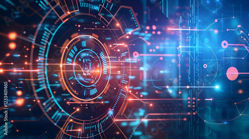 Abstract digital interface with glowing lines and circular patterns representing technology.