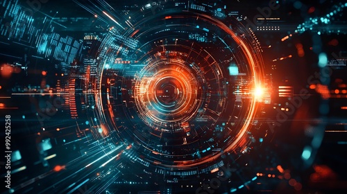 Abstract Digital Interface with Glowing Orange and Blue Circles