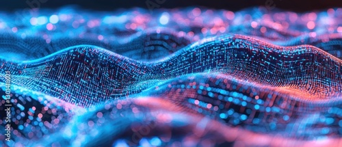Abstract Digital Landscape: Neon Waves of Data and Code