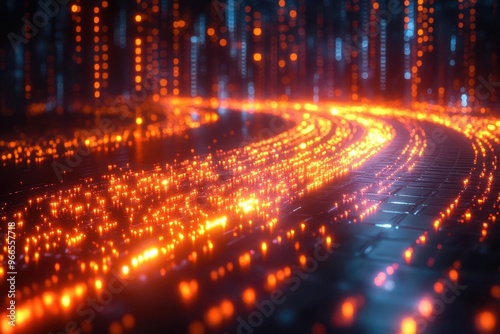 abstract digital landscape of glowing binary code streams of ones and zeros create a futuristic matrixlike environment symbolizing technology and data