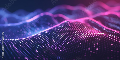 Abstract Digital Landscape with Data Waves, 3D Digital Wave with Glowing Dots