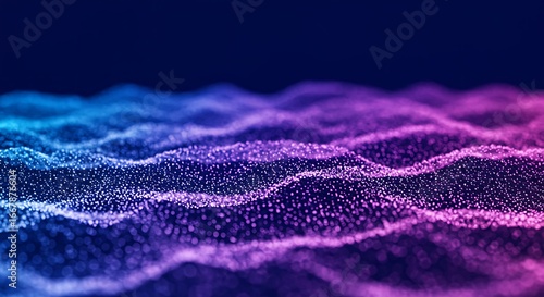 Abstract digital landscape with flowing particles for technology or science background visual communication