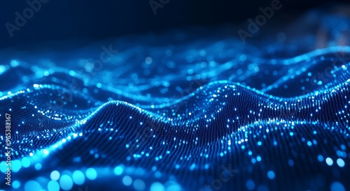 Abstract Digital Landscape with Glowing Data Points and Lines Generative AI