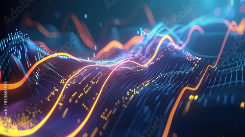 Abstract Digital Landscape with Glowing Lines