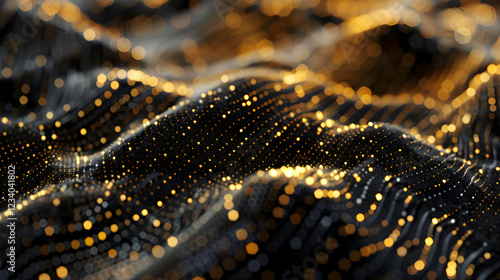 Abstract digital landscape with glowing particles creating a wave-like effect.